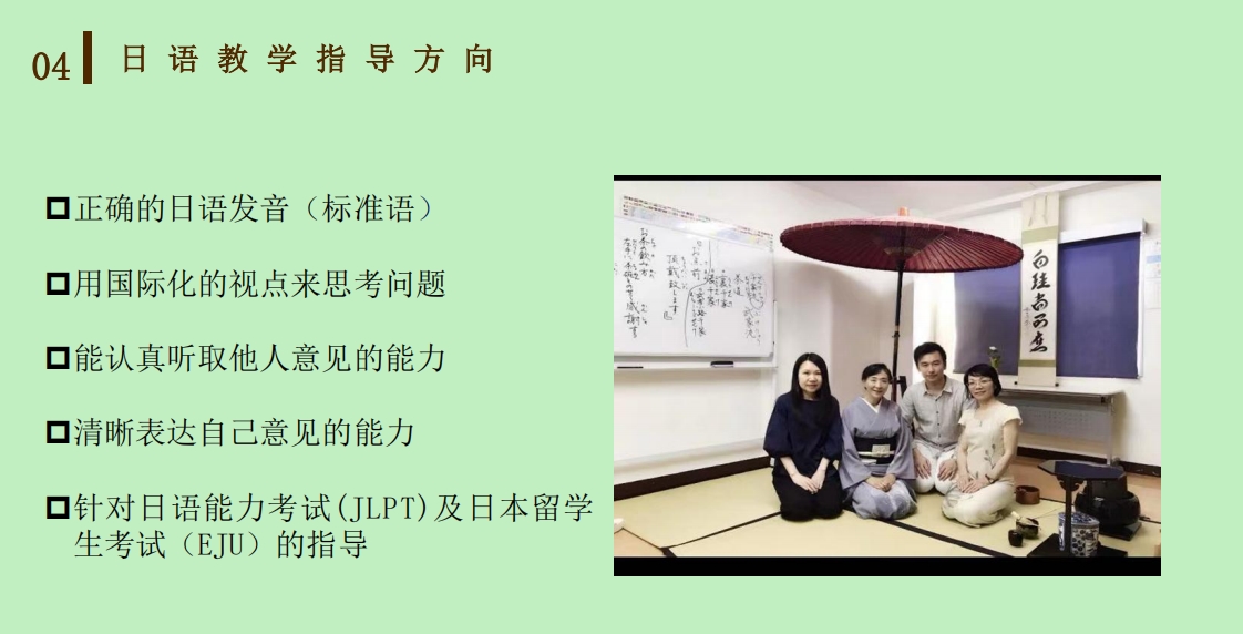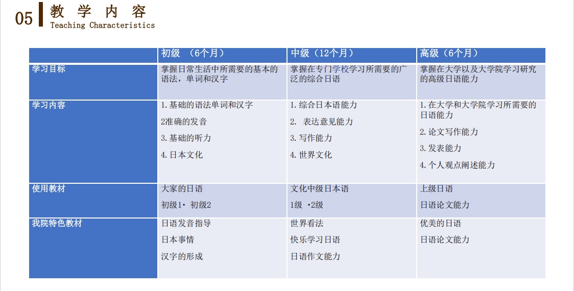 根据学生的日语水平状况,调整教学进度,让同学更加深刻的理解和学习日语。