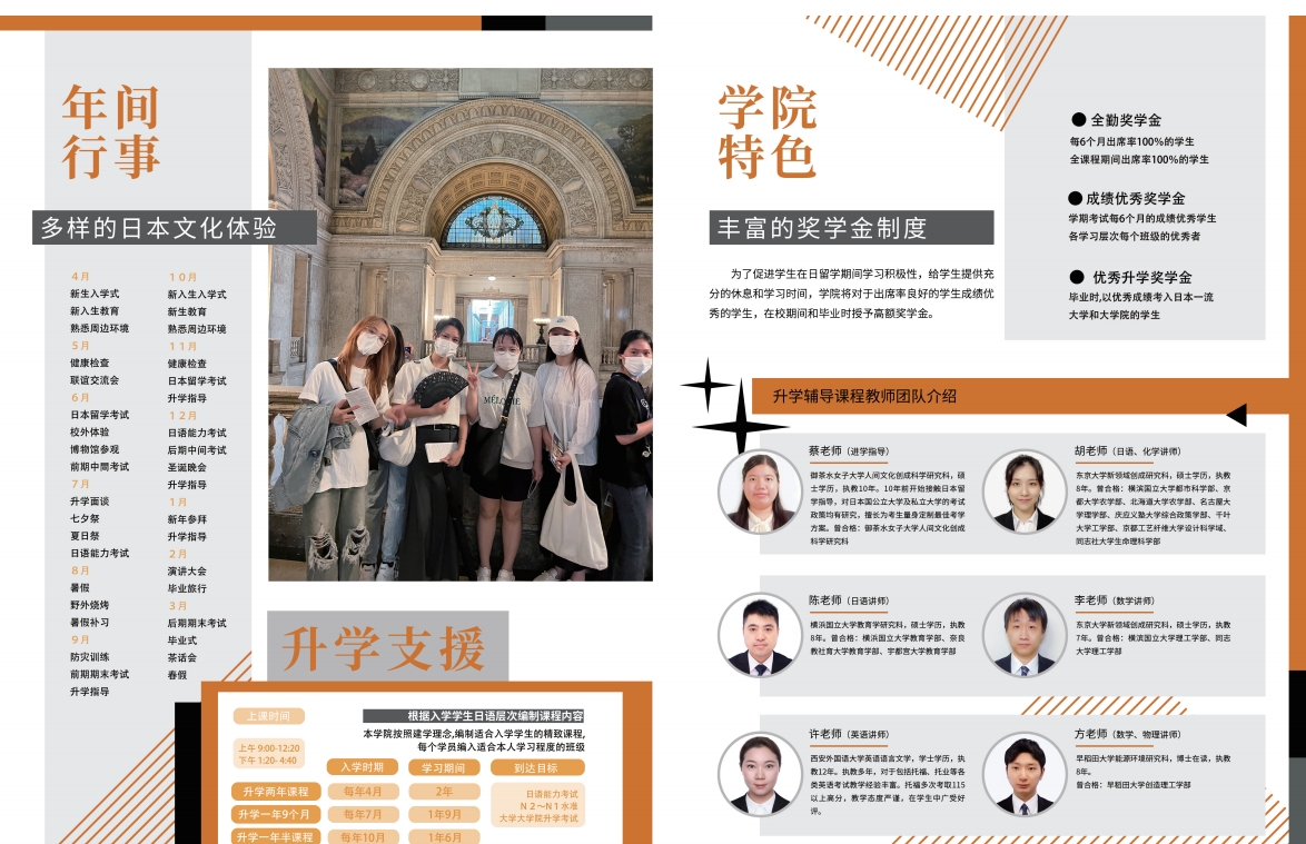 根据学生的入学时间和水平不同,专业定制了各种丰富的教学课程,为以后在日本生活和工作打下良好的基础。