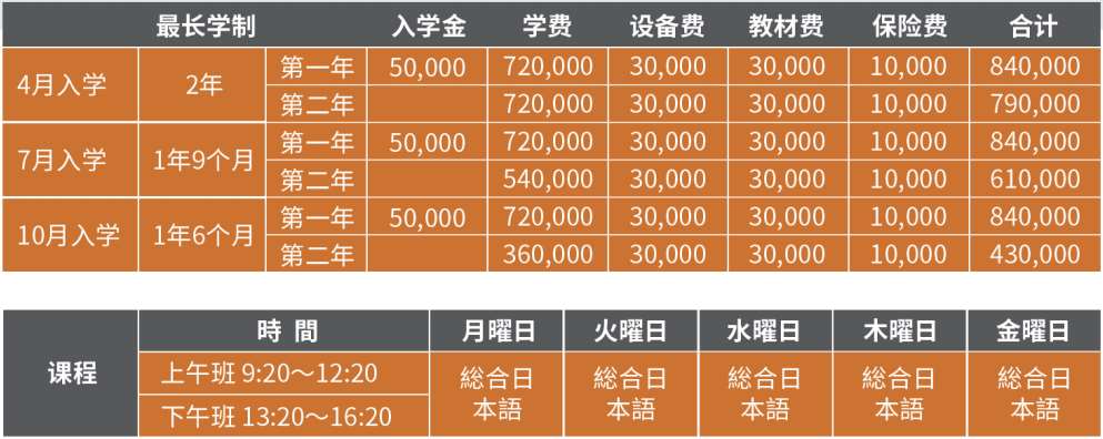 综合日本语课程是以在日本生活,交流等为目的的半日制课程,从听说读写4个方面进行学习,掌握日语基础,能从理解基本的日语到流利表达。课程分为初级,中级,中上级,上级这4个阶段,初级是以日本语能力考试(JLPT)N4-N3为目标。掌握日语基础,能理解基本的日语。中级是以日本语能力考试(JLPT)N3-N2为目标。在一定程度上理解日常生活各种场面中使用到的日语。中上级是以日本语能力考试(JLPT)N2为目标。增加日常生活等多领域的日语理解,学习写有逻辑的文章。上级是以日本语能力考试(JLPT)N1为目标。能够理解和使用多领域的日语。并理解抽象的单词,学习有逻辑的表现能力。